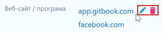 Ви можете додати необмежену кількість веб-сайтів до одного облікового запису. Ви можете видаляти чи редагувати їх, вказавши курсором на строку адреси та натиснувши відповідну іконку.