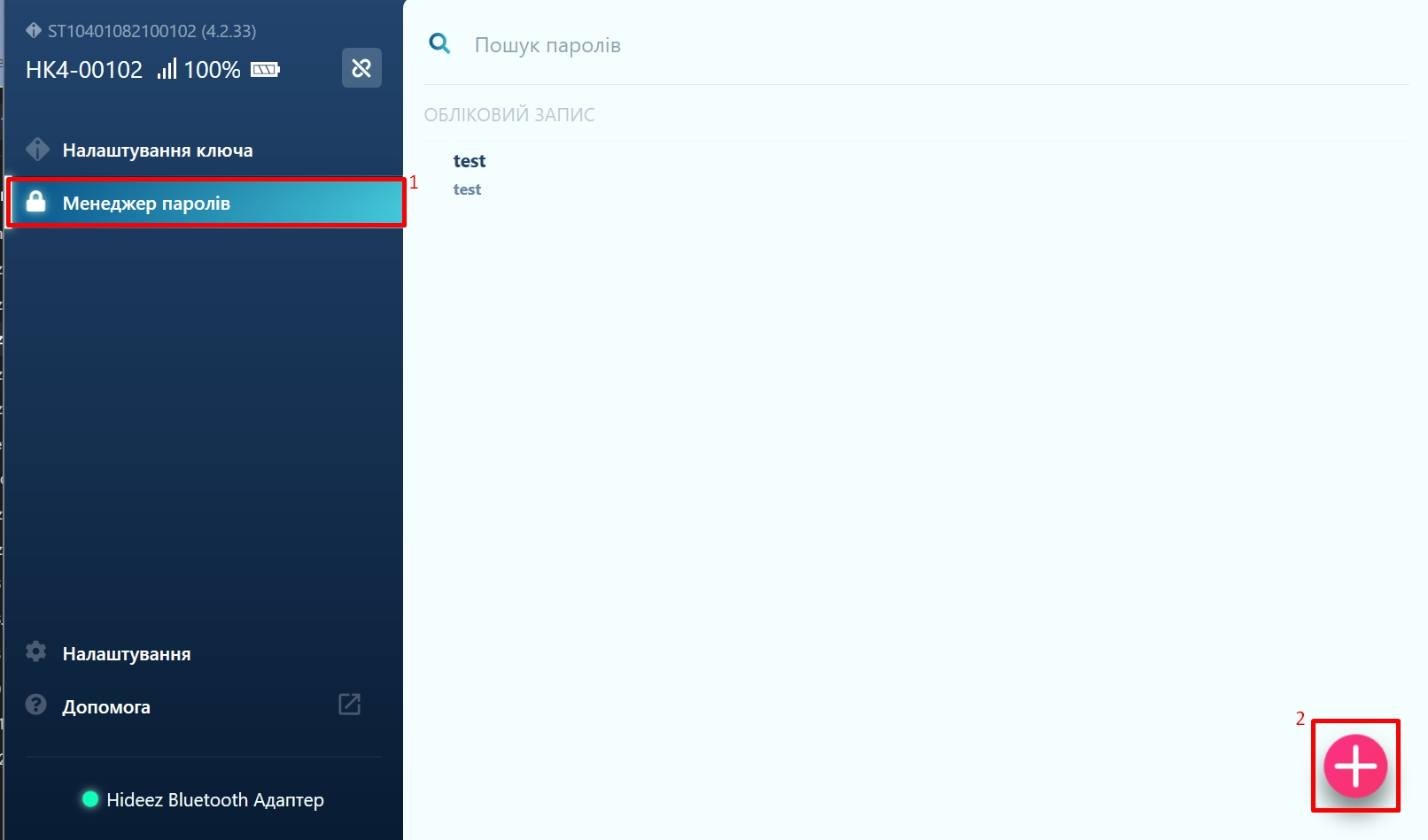 Hideez Key — Додавання облікових записів для веб-сайтів та програм. Генерація OTP кодів