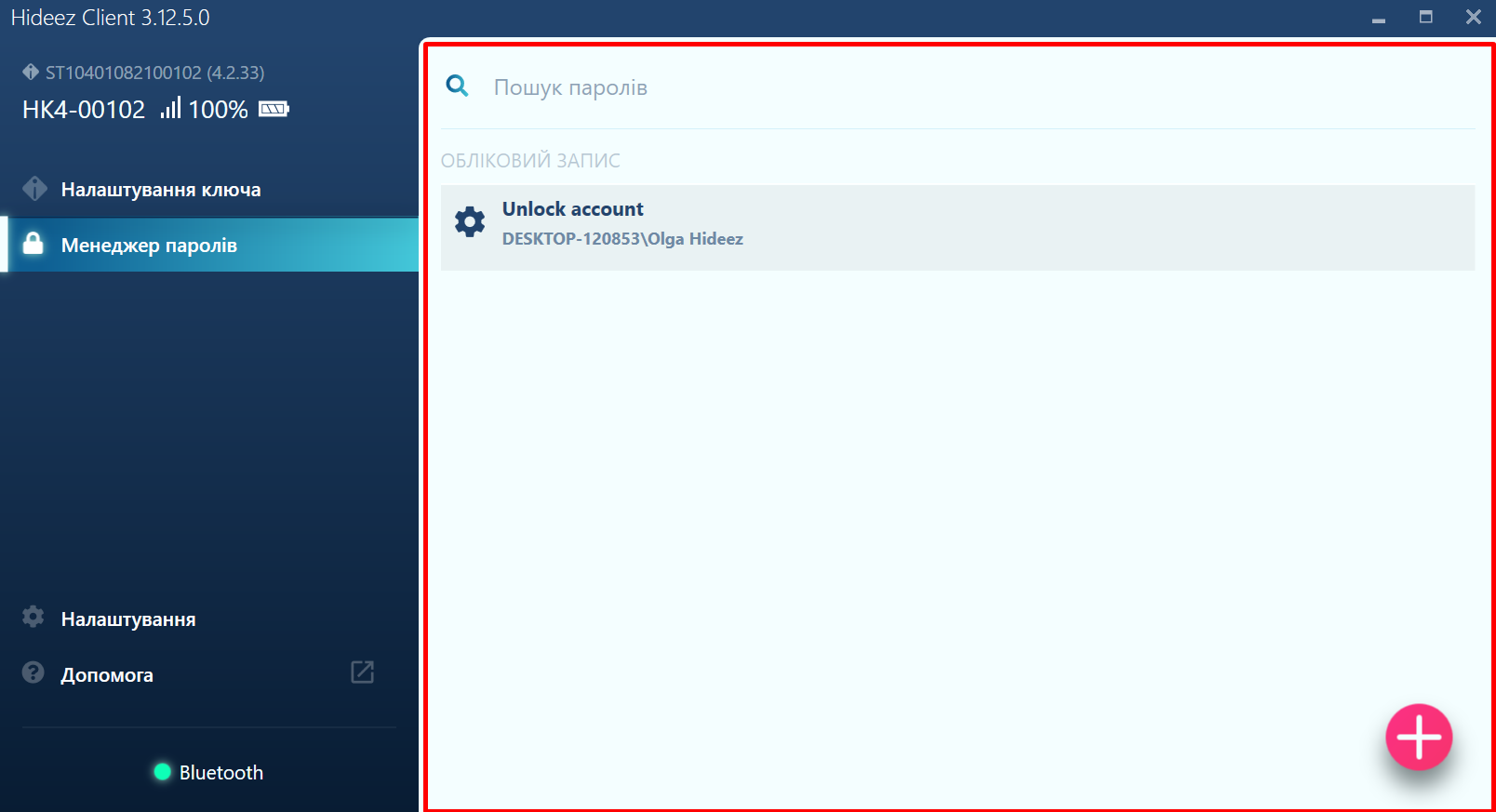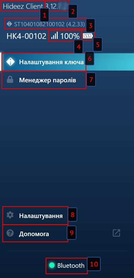 Hideez Client – Інтерфейс та налаштування
