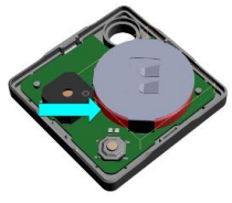 Корпус складається з двох половинок, з'єднаних між собою. Щоб замінити батарею, розділіть половинки нігтем або пластиковою карткою, просунутими в щілину. Не використовуйте металеві предмети. Вийміть стару батарею, проштовхнувши її зсередини вузьким пластиковим предметом. Встановіть нову батарею CR2032 на вузьку сторону (мінусовий контакт) плати. Hideez Key почне працювати.