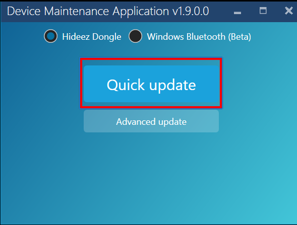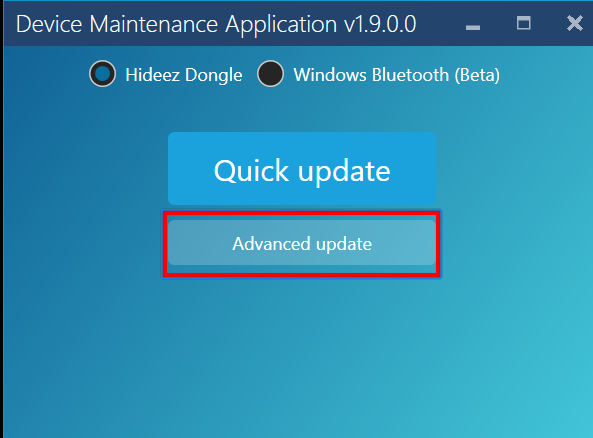 Запустіть Device Maintenance Application та оберіть опцію "Hideez Dongle" або "Windows Bluetooth".