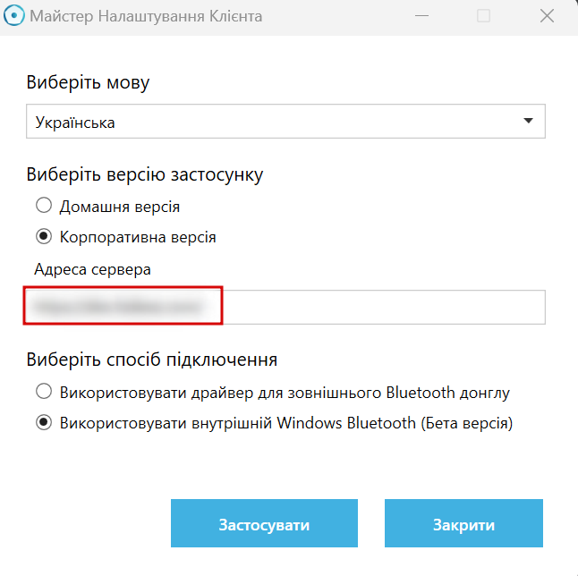 Оберіть бажані параметри та натисніть кнопку "Застосувати". Будь ласка, зверніть увагу, що після вибору корпоративного режиму, Ви маєте задати адресу HES.