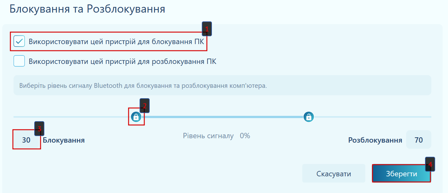 Тепер щойно рівень сигналу Bluetooth впаде нижче за встановлене значення у %, ваш ПК буде заблоковано.